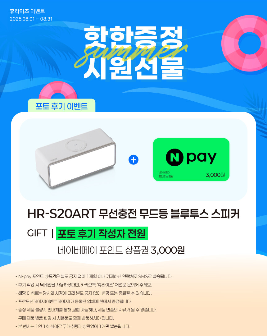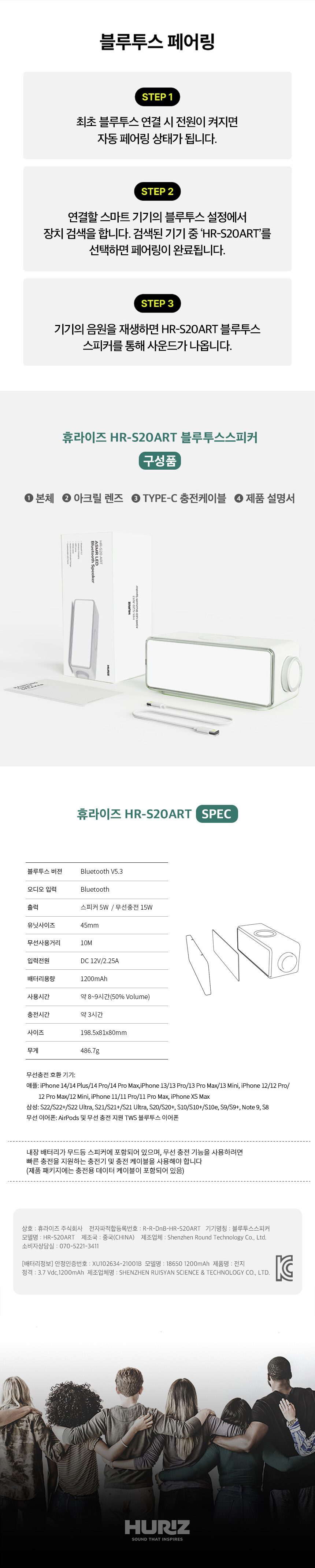 HR-S20ART 무선충전 무드등 블루투스스피커